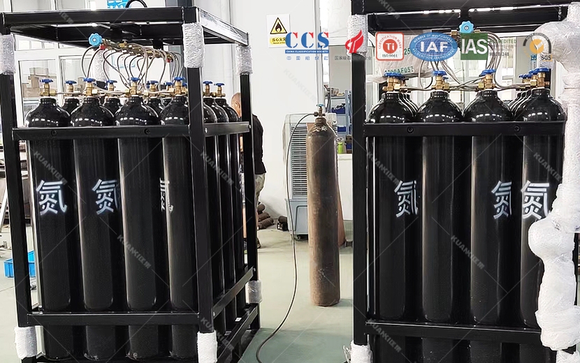 集装格/气瓶支架是按照标准生产,是一种技术先进的充装、汇流装置,劳动强度小、操作简单、运输方便,适用于瓶装气体用量大的厂矿企业施工场地。目前有氧气集装格、氮气集装格、氩气集装格、氦气集装格、二氧化碳集装格、混合气集装格、氢气集装格、CNG集装格等,有立式、卧式两种,规格有6、9、12、16、20、25、30、40瓶组。